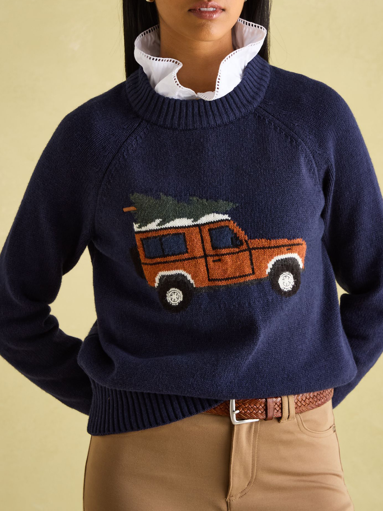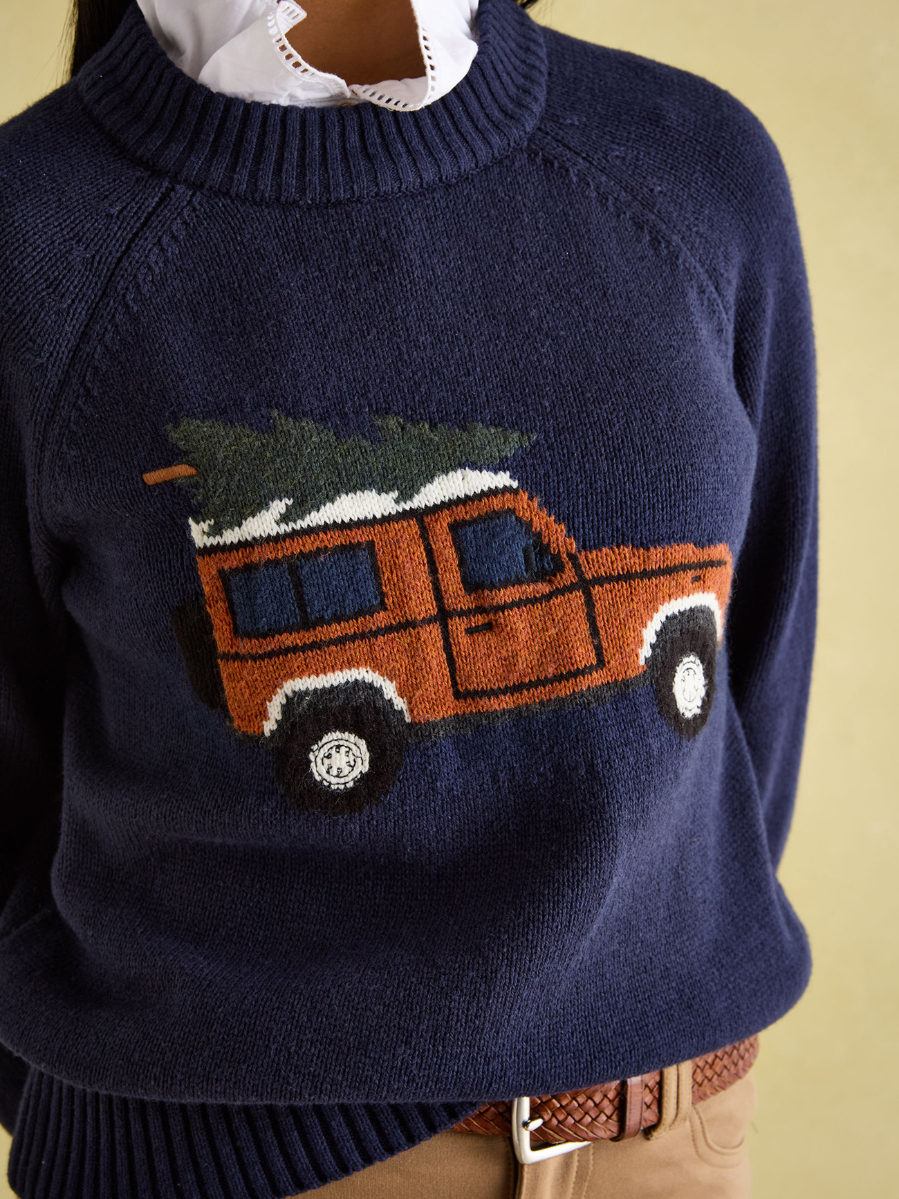 Country Twist Cracking Navy Intarsia 4x4 Jumper