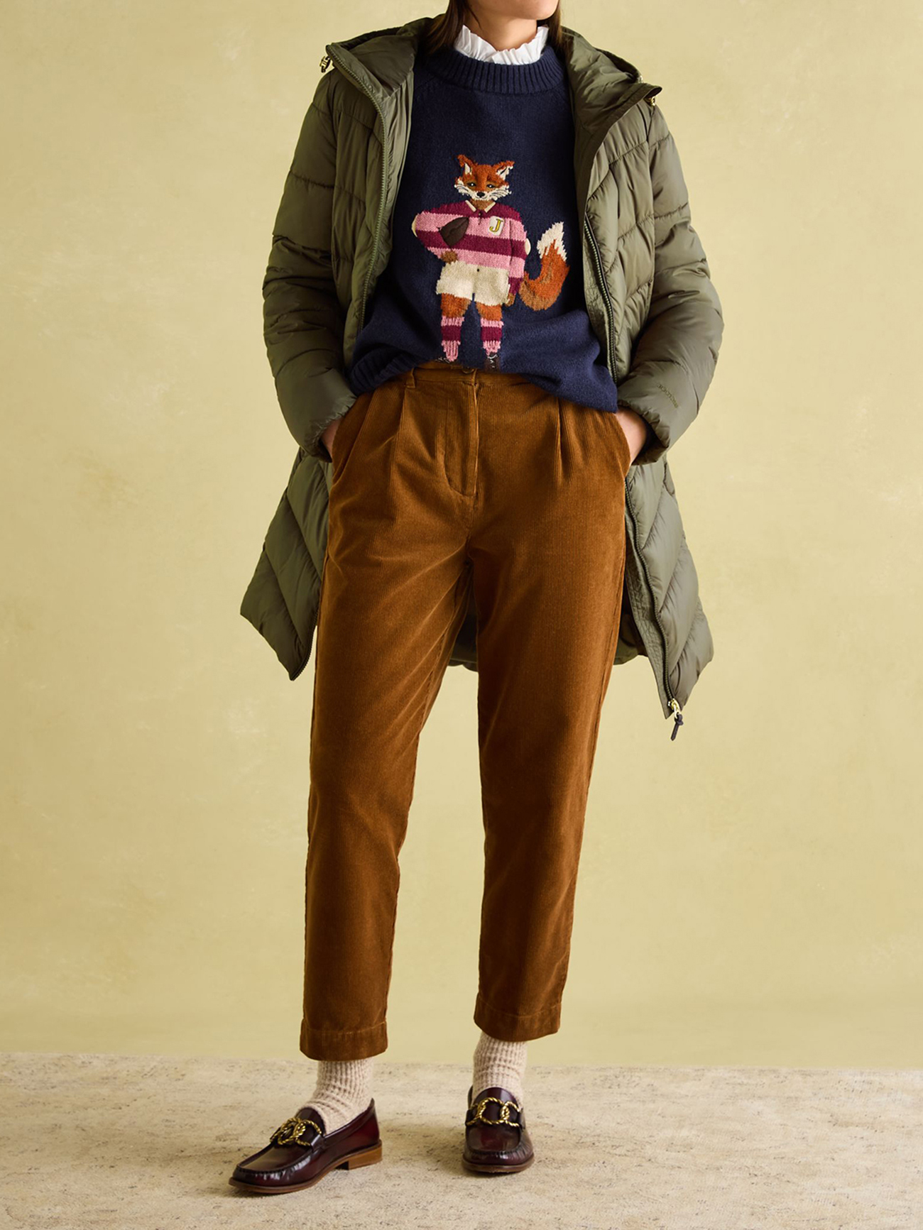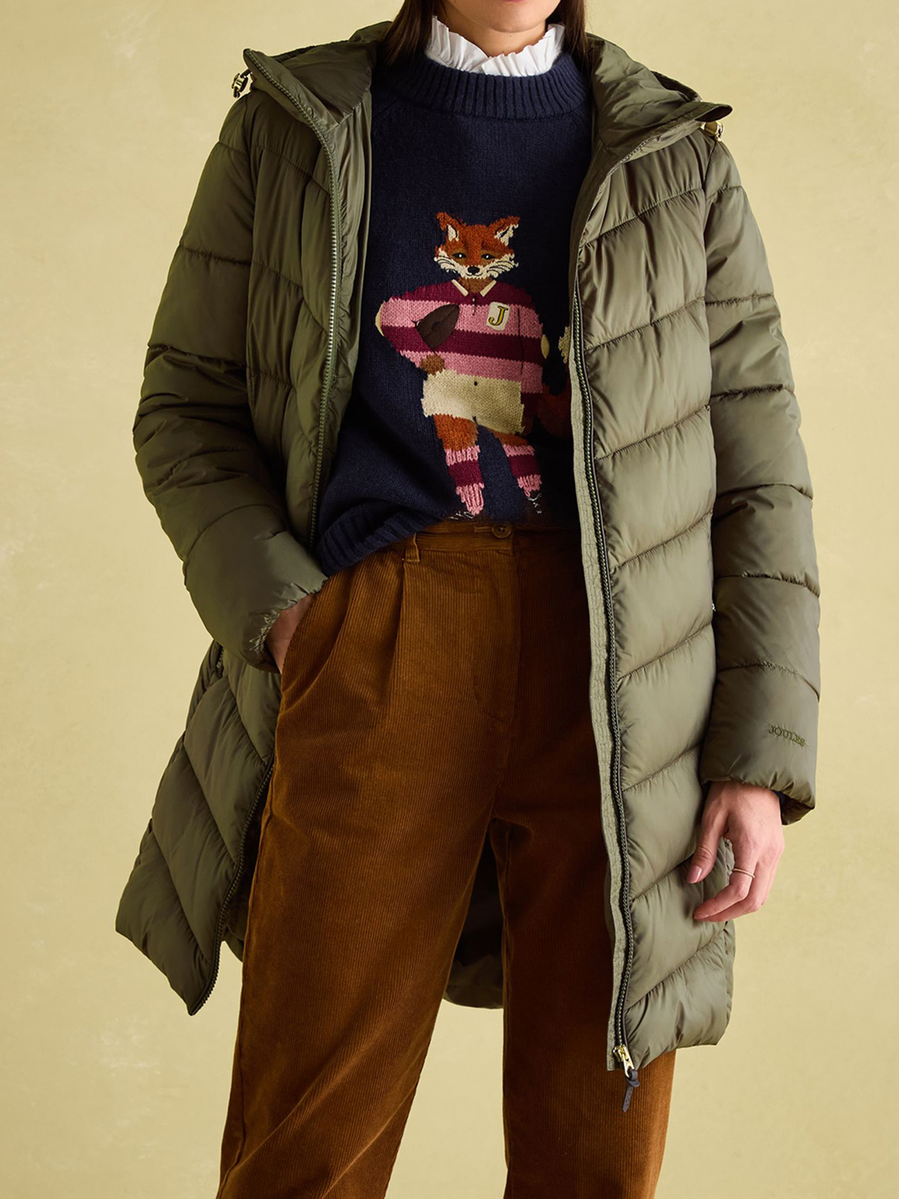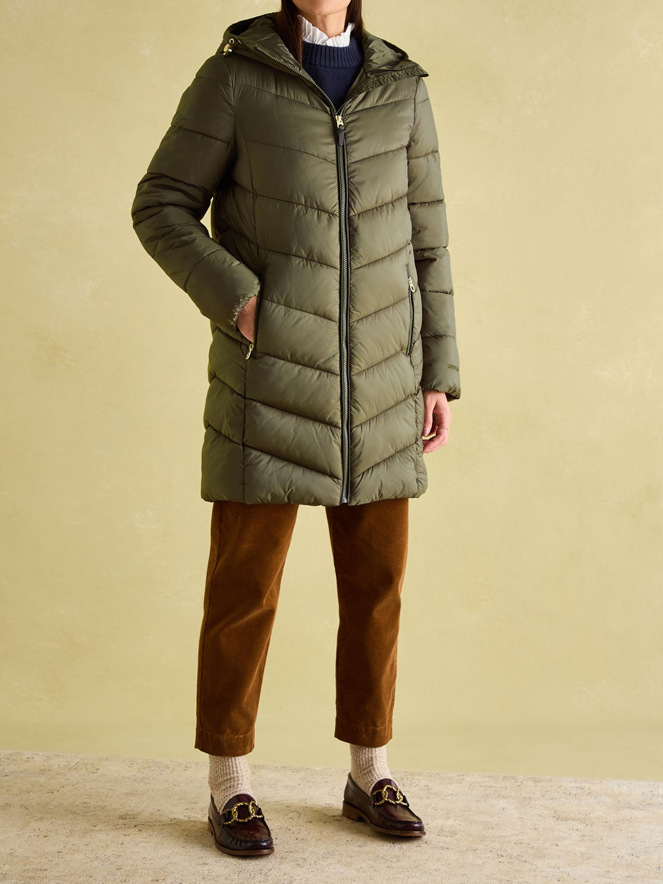 Mid Length Green Showerproof Padded Coat