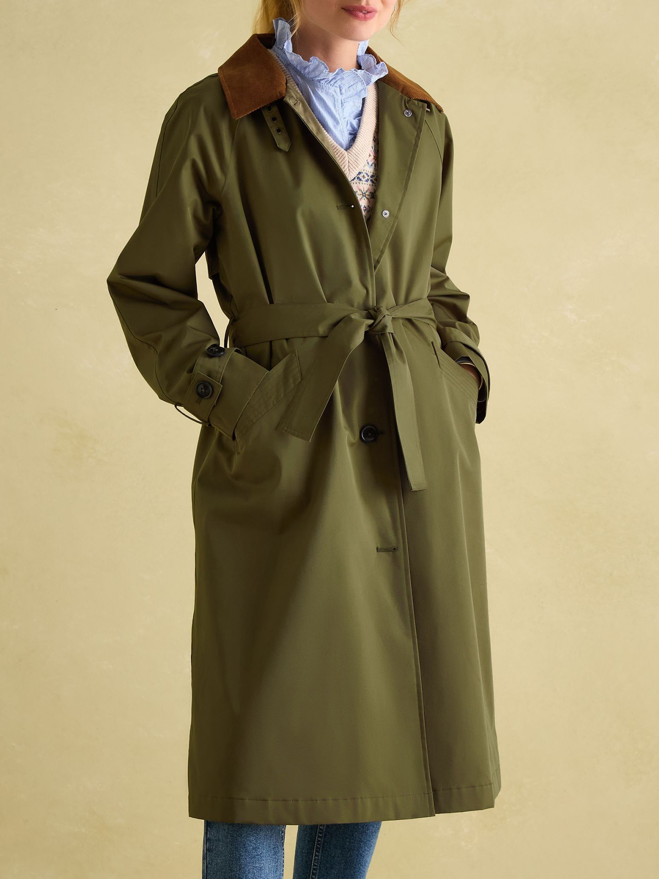 Green Waterproof Belted Trench Coat