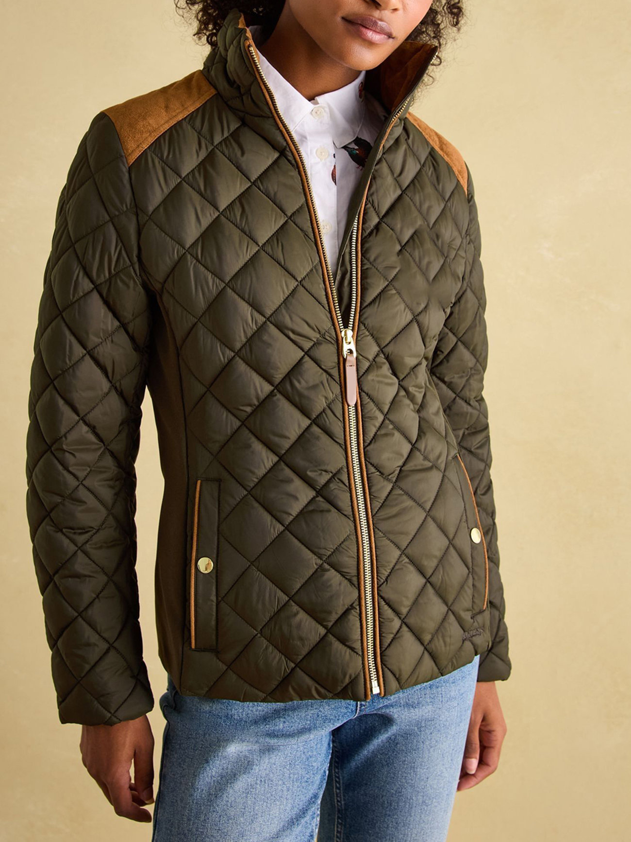 Khaki Green Showerproof Diamond Quilted Coat 27246