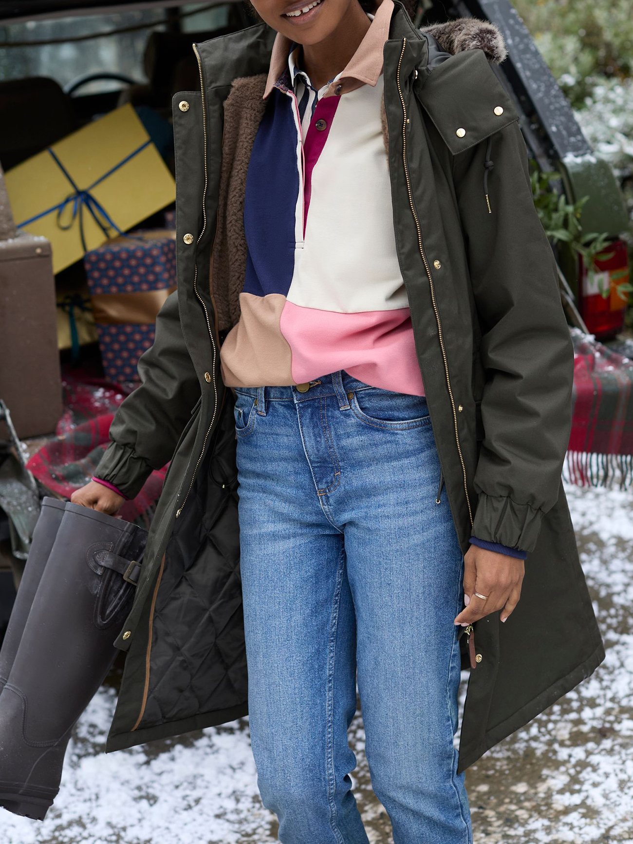 Khaki Green Waterproof Fleece Lined Raincoat