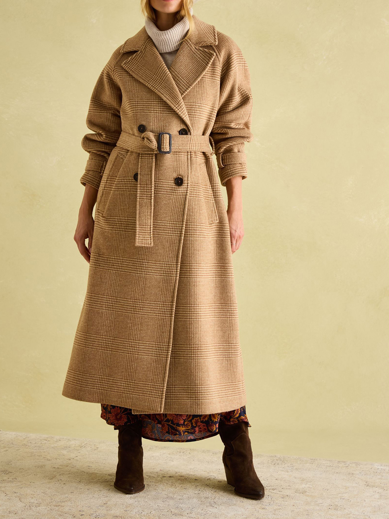 Tan Brown Longline Wool Blend Coat