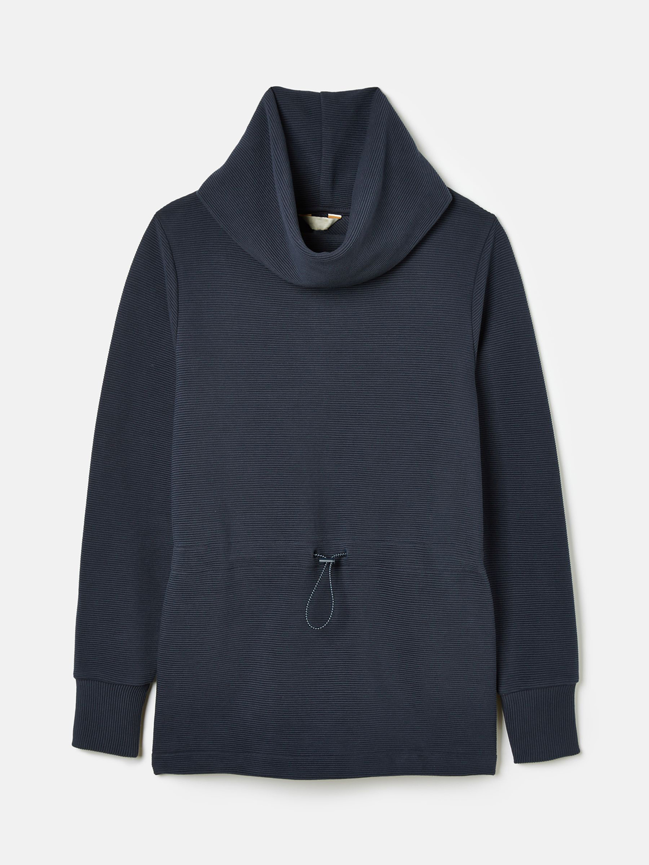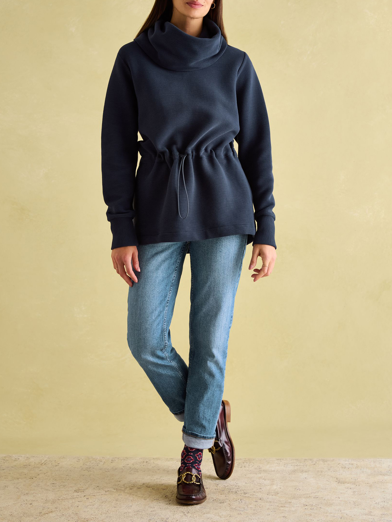 Adjustable Waist Willow Navy Cowl Neck Sweatshirt